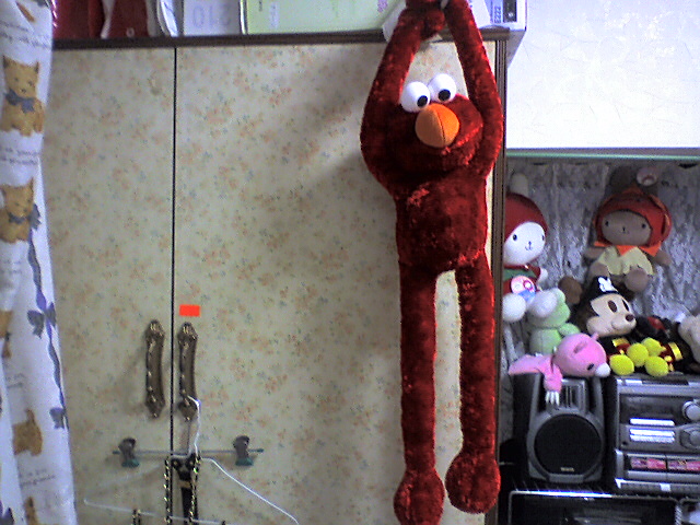母につるされたエルモ
